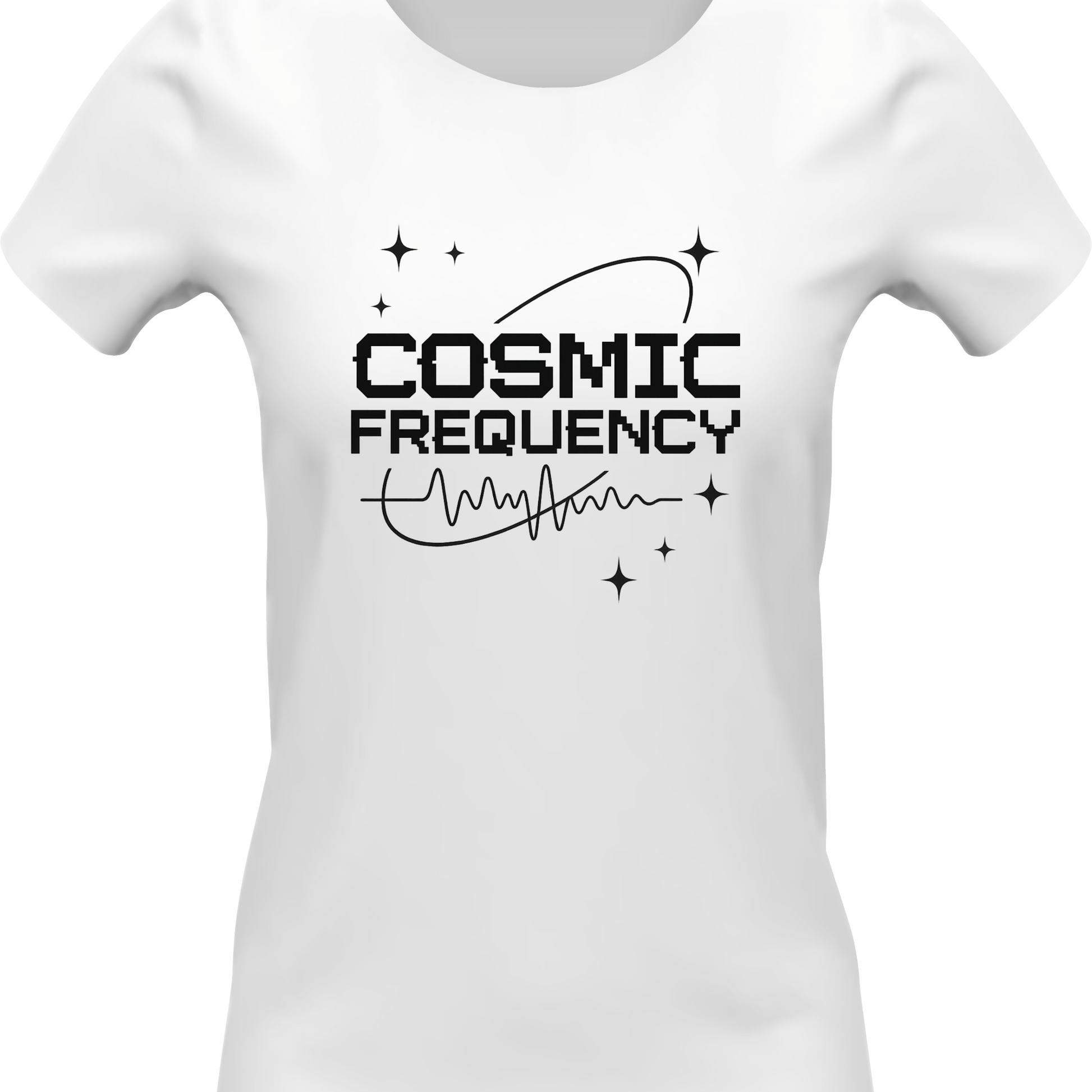 Tune in to the universe with this space-inspired graphic tee featuring the phrase “Cosmic Frequency” in a bold digital font, accented by starbursts and a flowing frequency line. Perfect for stargazers, spiritual seekers, and high-vibe energy lovers. Soft, stylish, and designed to help you radiate from the inside out.